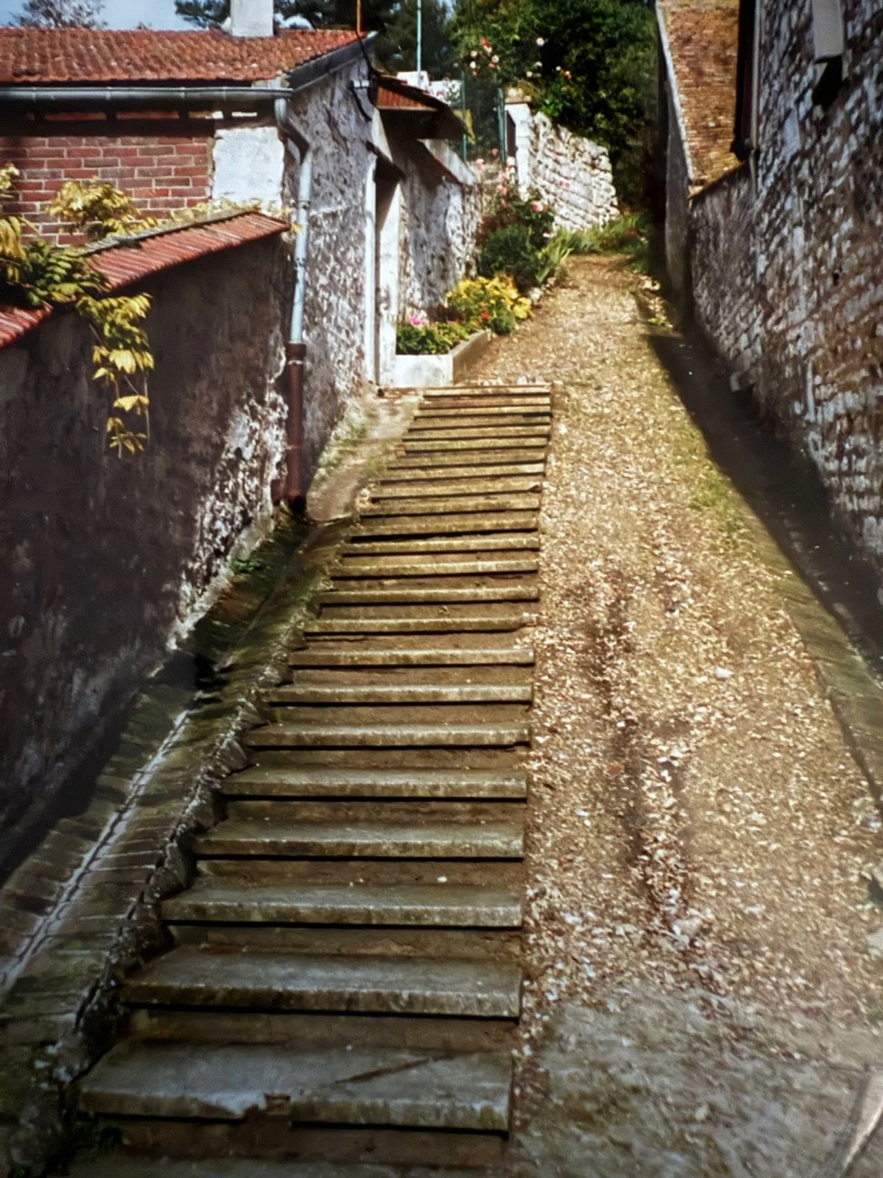 At 2:00 we finally spotted the pink walls and teal green shutters of a small building at Maison # 25, opened the door, and bought entry tickets to the artist’s the private studio, home and gardens that were our destination. It was the final weekend of October, and for the next couple of hours we were the only visitors except for a tall, stately woman with whom we spent the remainder of that day. But that is all a part of the story I will save for next week’s installment from my Paris 1992 journal.