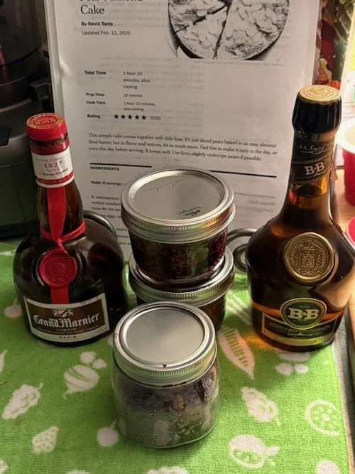 Among the hors d’oeuvres the night of the gathering were figs stuffed with melted gorgonzola cheese as well as crackers with assorted and a pot of fig jam that Mindy had made. We all wanted her fig jam recipe that she said just takes minutes to make in the microwave. The next day, jars of fig jam appeared in kitchens up and down our little magic crescent-shaped road. Anita made her version with brandy. I made mine with Grand Marnier because of its subtle zesty essence à l’orange.