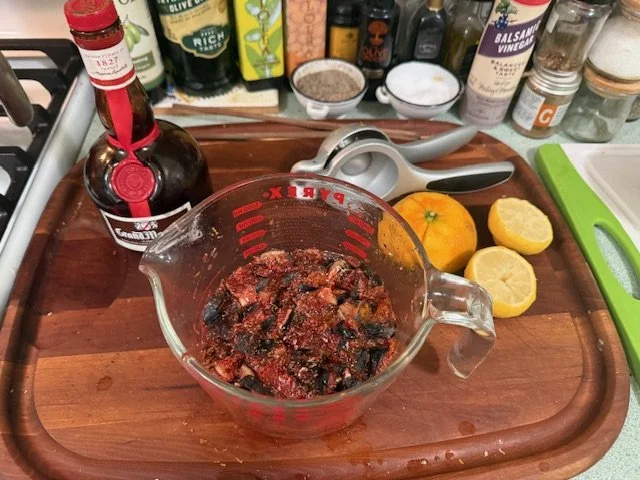 Anita was there the next day, harvesting pint after pint of gorgeous Black Mission figs with red centers and green figs with light amber insides. Every day I’d come home to find more figs that she’d left by my front door. They are delicious with assorted cheeses and thin crackers as a snack or with a glass of wine in the evening. I ate one every time I passed my dining room table and still hardly made a dent in the pile.