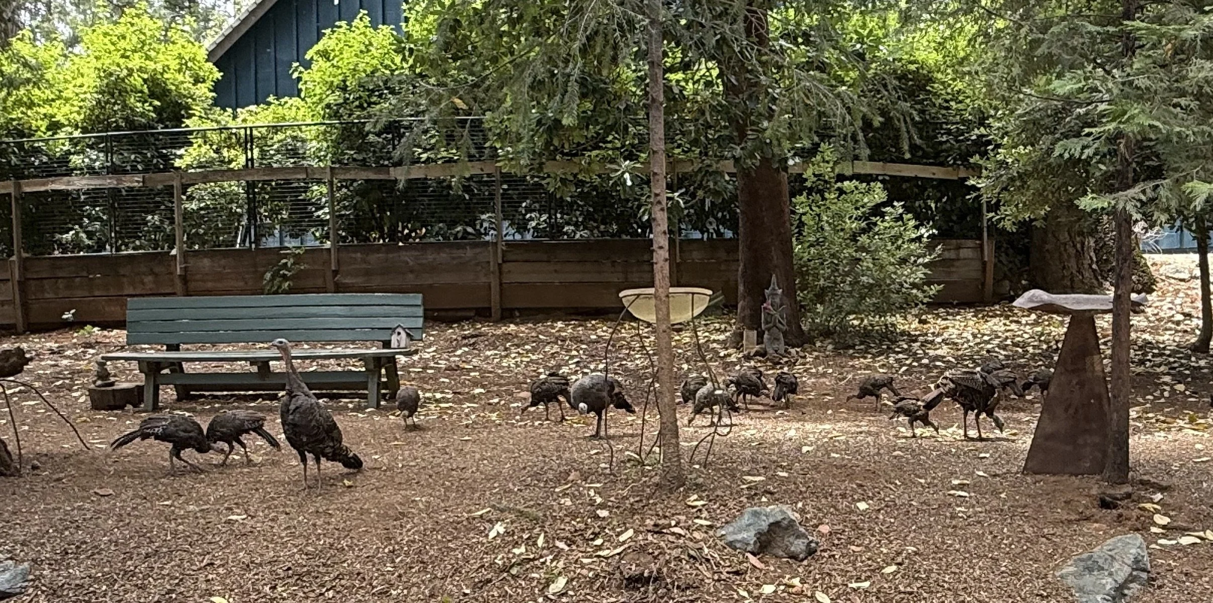 Late July was a very busy time in my neighborhood in the Sierras. Junco eggs in a tiny nest hidden under violet leaves in my neighbor’s planter box hatched and two weeks later they were gone. Once they’d fledged and left the safety of their nest, their parents had to find, feed, and teach their baby birds how to survive in the world. My history with such matters goes way back to the days at Breakfast Creek when I raised ducks and geese from hatchlings and literally had to teach them to swim before releasing them in our pond. My greatest success was Gilbert, a duck that hatched in an incubator in our sunroom, and upon seeing me quacked “Mom!” For both of us, it was love at first sight.