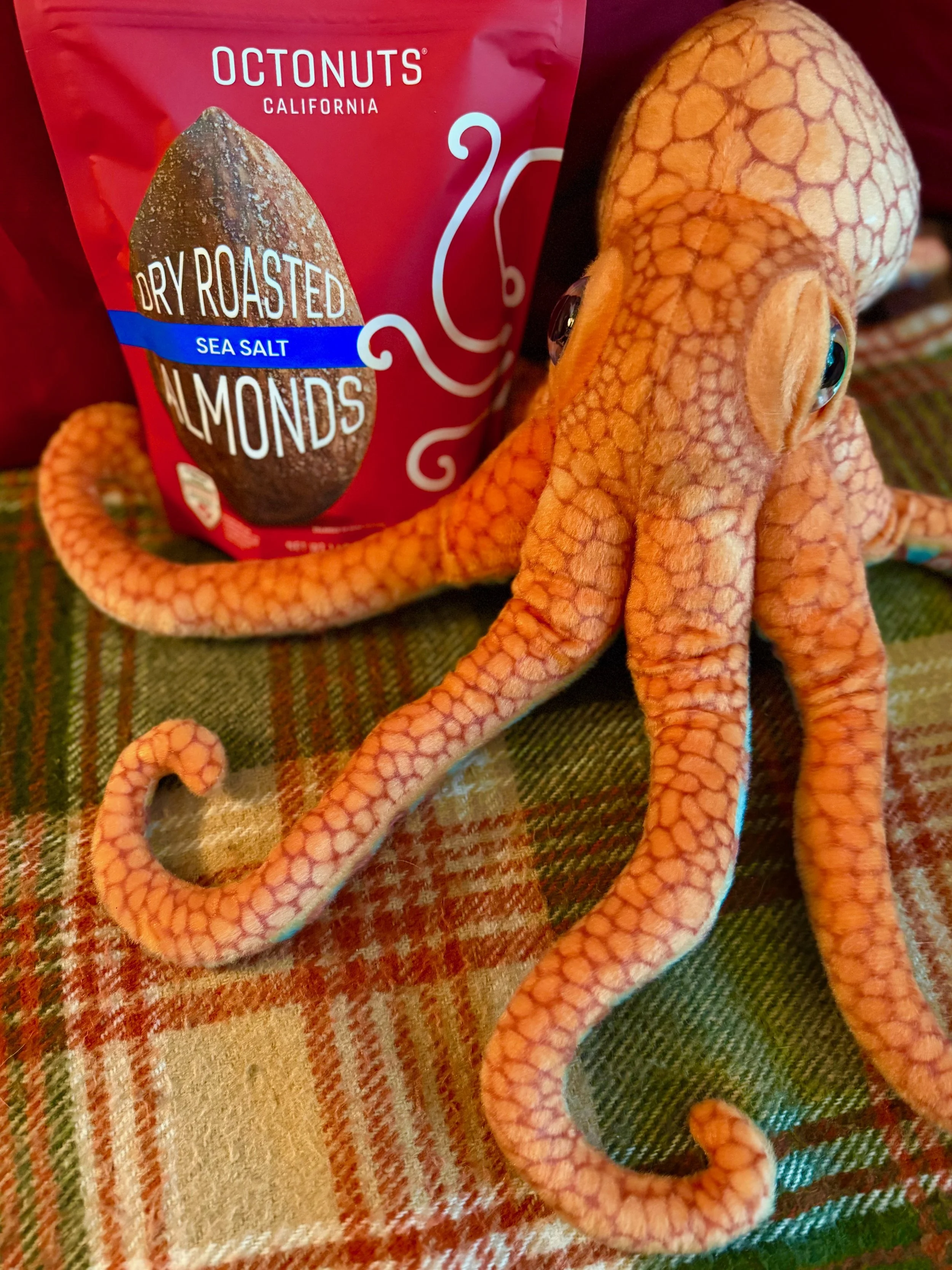 As I was shopping in a local market today, I stopped to buy a bag of almonds and discovered “Octonuts California: Goodness you can wrap your arms around.” On a package of Octonuts dry roasted sea salt almonds, I spotted the distinctive arms of an octopus. What’s the deal with the Octopus? The company says, “It’s flexible, curious, and like us, always hungry to try new things. The world inspired, and we delivered. Global flavors meet California Almonds. Dive in, because boring snacks are yesterday’s problem.”