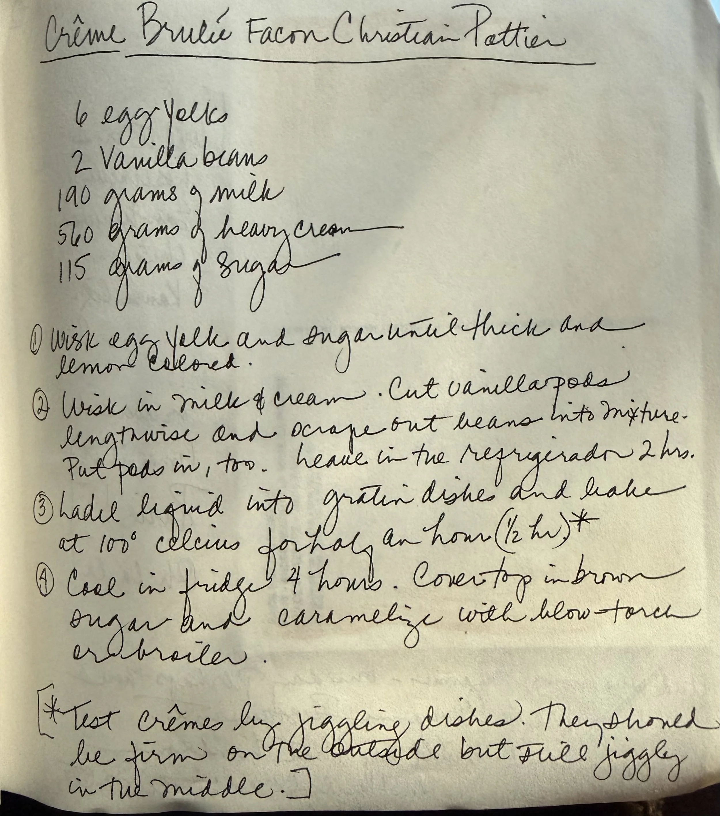 [Postscript: Like Claude Monet and his wife Alice, I left Paris with a recipe to try out in my kitchen back home. It’s a recipe for Crème Brulée from the Patisserie of Christian Pottier, Rue de Rivoli, Paris 4th. Bon appétit dear Readers. Thank you for taking this trip back to Paris with me over the past month.]