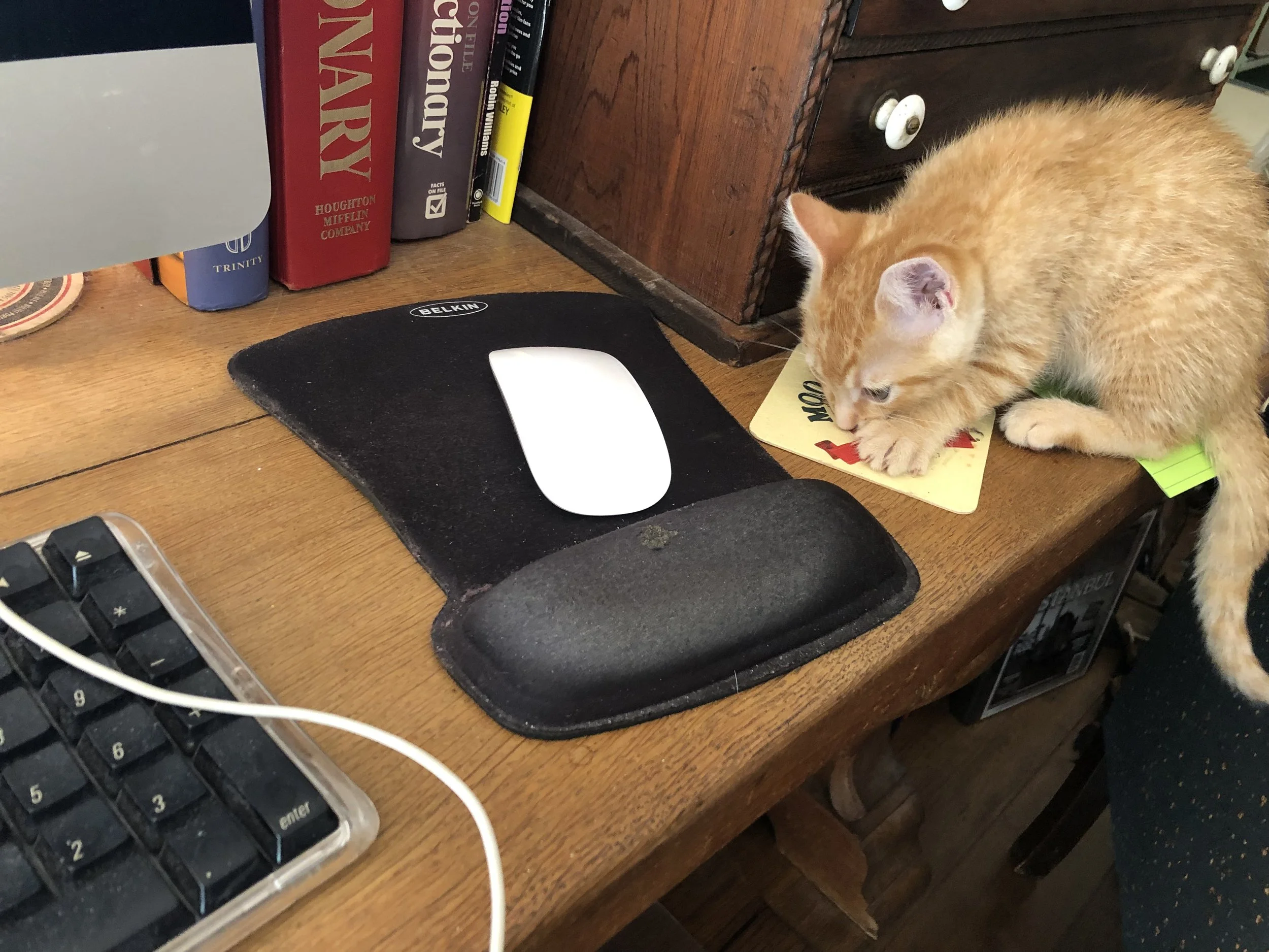 Now that the World Series is over, Peekay snuggles up on a wool blanket that I spread over my lap and snoozes while I read. Last week, I shared the latest adventures of the characters in Richard Osmond’s newest novel, We Solve Murders. A black cat on the book’s cover catches his attention. “His name is ‘Trouble’” I tell my little friend. “You’d know about that, wouldn’t you?” And when a ginger tabby like Peekay makes its entrance on the final pages of the novel, he’s certain there will be a secquel. “More trouble,” I say, but by then he is sound asleep, whiskers twitching, chasing dreams of his own.