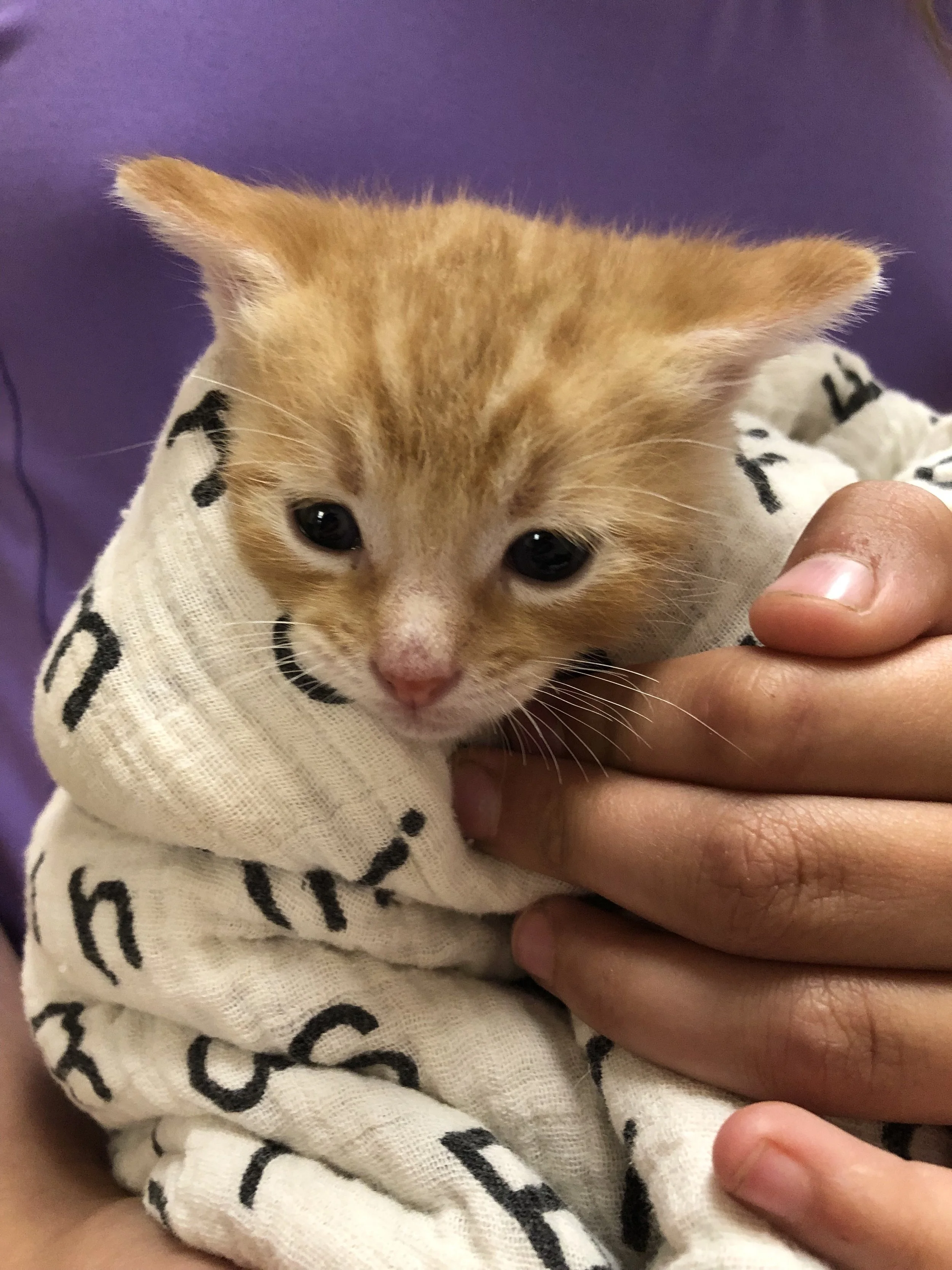 Peekay came into my life almost a year ago, wrapped like a newborn in a little blanket up to his chin, his big ears flat with worry. Barely eight weeks old, he looked at me and sensed that a change was about to take place, and I was it. I soon learned that this tiny yellow tabby/Bengal kitten was born smart as a whip. He’d been carried around by his semi-feral mother who was looking for a family to take over his care; and as it happened, I was ready to be his person.